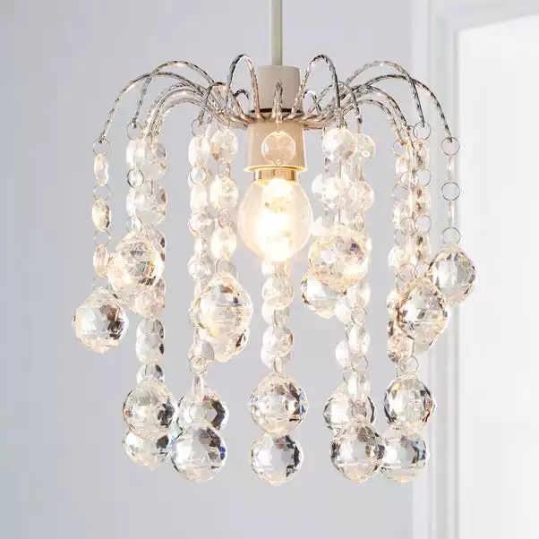 Featuring cascading crystal effect gems, this clear hanging pendant light fitting is available to purchase online.