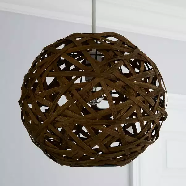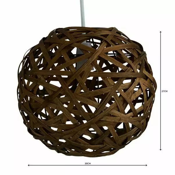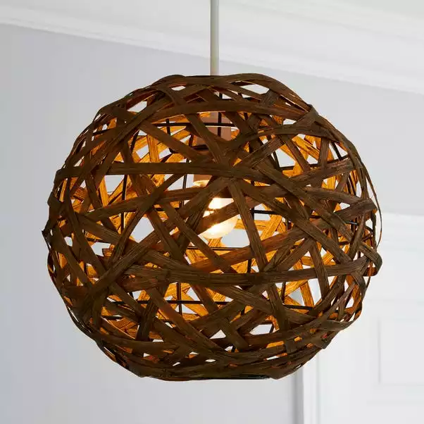 Crafted from woven bamboo this circular ceiling pendant requires a light bulb with a maximum power output of sixty watts.