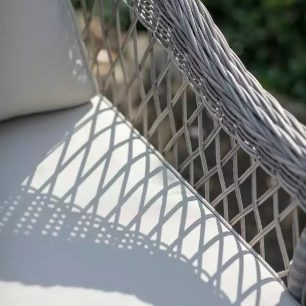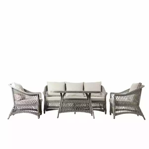 Relax back on our Corte Country Sofa Set this summer. With a unique rattan design, this set will complement any garden style. Removable showerproof cushions are included with the set and the set is weather resistant. The glass top table will be great for outdoor dining or drinking.
