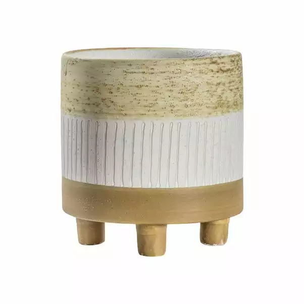Add a decorative touch to your home with this stylish and contemporary Eastling Pot. Beautifully designed with a brushed-type finish base and top, with white ribbed details in the centre. This stunning pot is perfect for displaying your favourite plants in any room of your home. Pair it with coordinating pieces from the Eastling range to create a beautiful plant display.