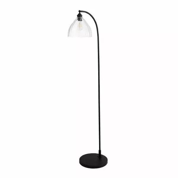 Featuring a curved stem, this stunning Churchgate Allexton Glass Floor Lamp has a striking black base for a stylish appearance, paired with a gorgeous clear flutted ribbed glass shade for a feminine touch. This floor lamp is complete with a 1.5m cable foot switch, making it easy to turn on and off. Pair this floor lamp with matching family pieces from the Churchgate Allexton range for a coordinated look.
