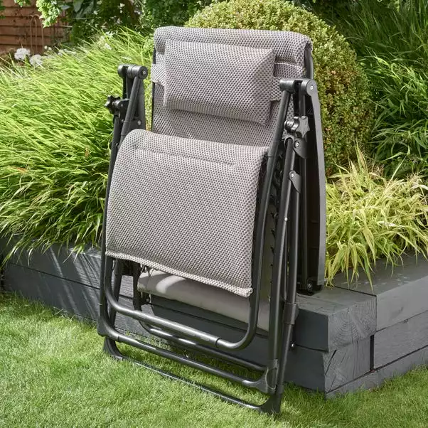 Fashioned with a contemporary grey colourway, the Amsterdam Lounger has a padded cover to provide you with the best comfort as you lounge in the sun. Recline using your own body weight then use the locking mechanism in the arms to fix the chair in place. This lounger requires low maintenance.