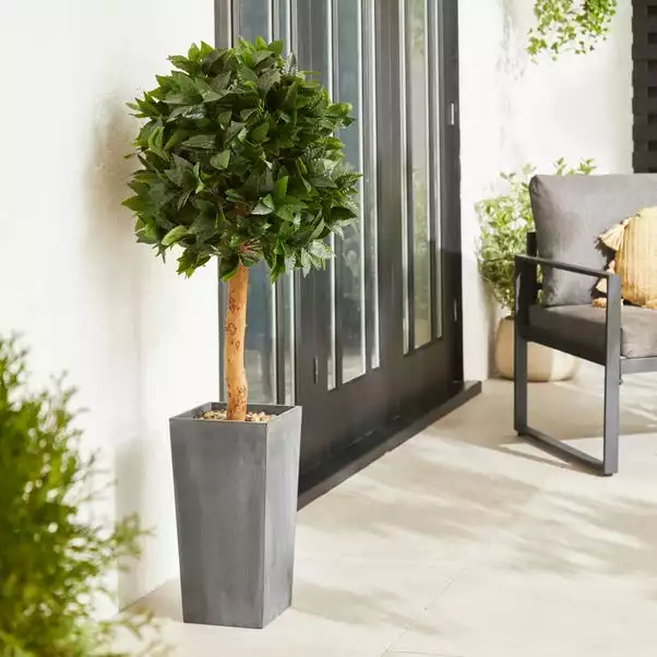 This Bay Tree in Anthracite Pot is an attractive alternative to real plants. Made from weather resistant materials, it is easy to clean and can be used both indoors and outdoors.
