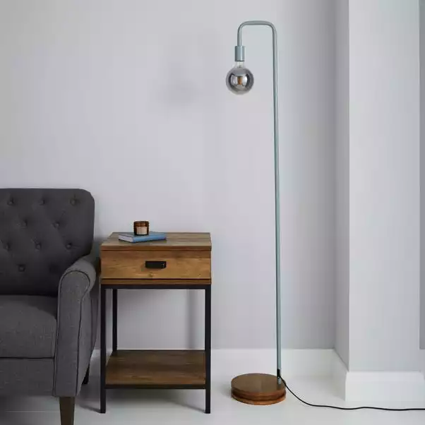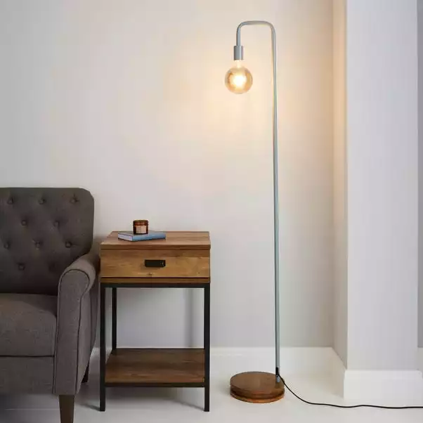 Stylishly designed, this LED floor lamp features a matt grey stand with natural rubberwood base and is supplied with a globe shaped 7W LED E27 filament bulb. This simplistic floor lamp is operated by an inline foot switch for convenience.
