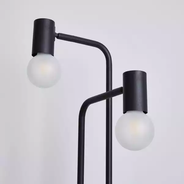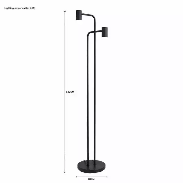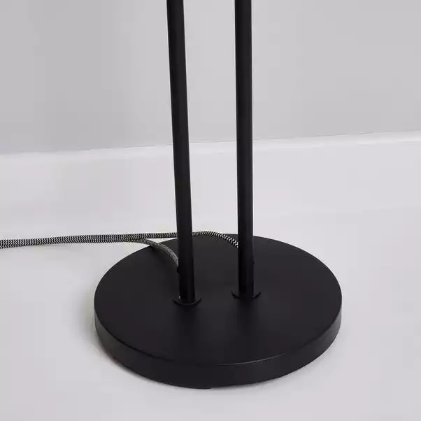 This stylish floor lamp with a contemporary design and modern Herringbone flex will complement an array of home decors beautifully, alongside its stunning, matt black colourway. Both of the bulbs have separate switches, making it an attractive piece and matching family items are also available to help coordinate any room of the home.