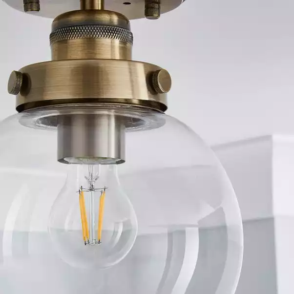 This industrial style wall light is the ideal piece for any room of the house, including bathrooms, with its modern colourway and antique brass detailing that will complement an array of home decors. The dimmable compatibility makes this both an attractive and practical piece, perfect for mood lighting. Matching family items are also available, to help co-ordinate your home.