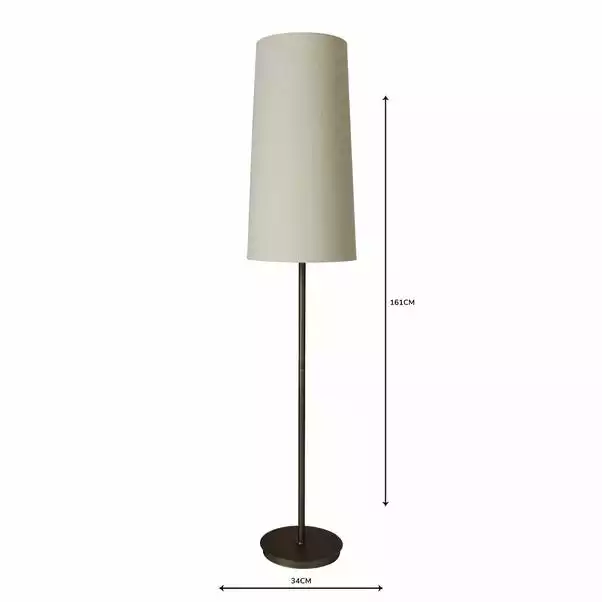 Add a touch of style to your room with this modern floor lamp. Beautifully designed in a dark antique bronze finish, this stunning floor features an oversized shade with a complementing stand and is supplied with an in-line switch.