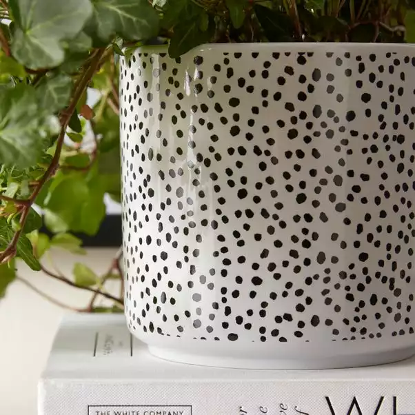 Add a contemporary element to your home with this beautiful Ceramic Dotty Plant Pot, perfect for placing small plants around your home or desk space. This stylish plant pot is available in two sizes and easy to maintain.