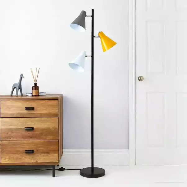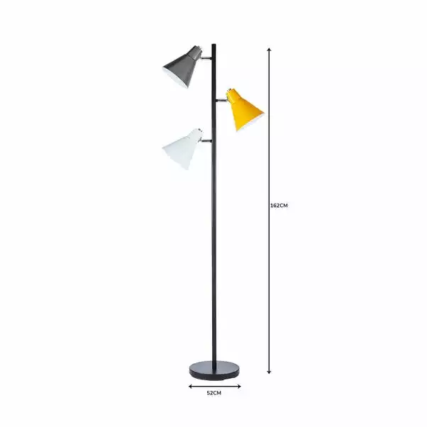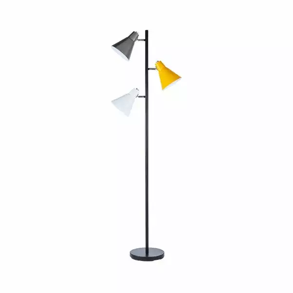 Make a bold and stylish statement in your home with this multi head floor lamp. Constructed from steel, this floor lamp features a yellow, black and white head which can be positioned in different angles for optimum light distribution.