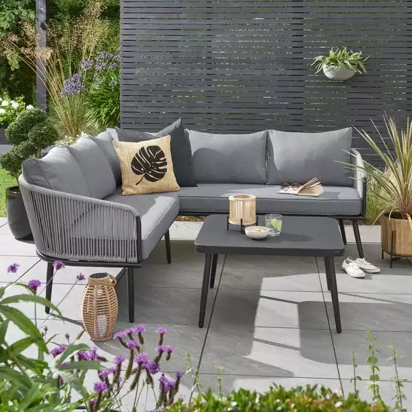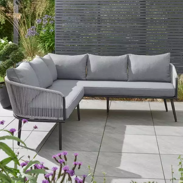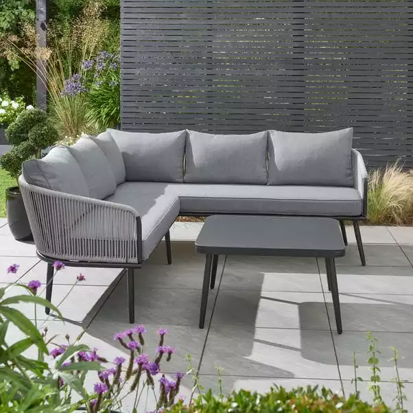 The Crescent Corner Sofa Set features a contemporary design and is perfect for small spaces. Featuring 1 3-seater sofa and 2 table chairs, it’s made from light weight aluminum frames and has a glass table top that makes it both stylish and functional. The glass top also adds a modern touch to the set. The seats are made from 100% recycled polyester fabric.