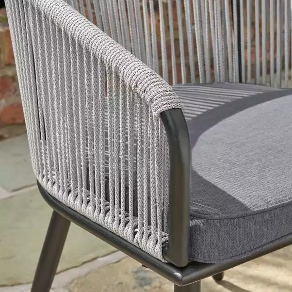 This 6 seater dining set is perfect for outdoor spaces. Featuring an aluminum frame and an oval shape glass table top, this is the ultimate outdoor furniture for any home. The contemporary design and colour option make this an amazing addition to any garden or patio!