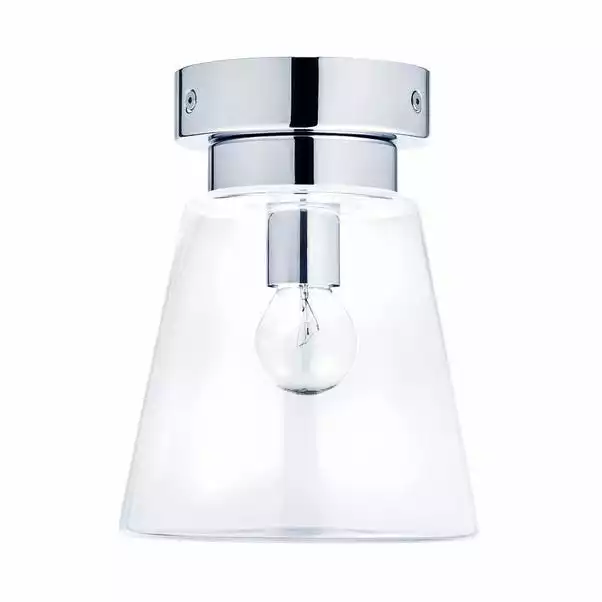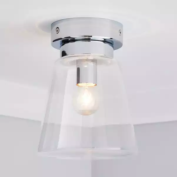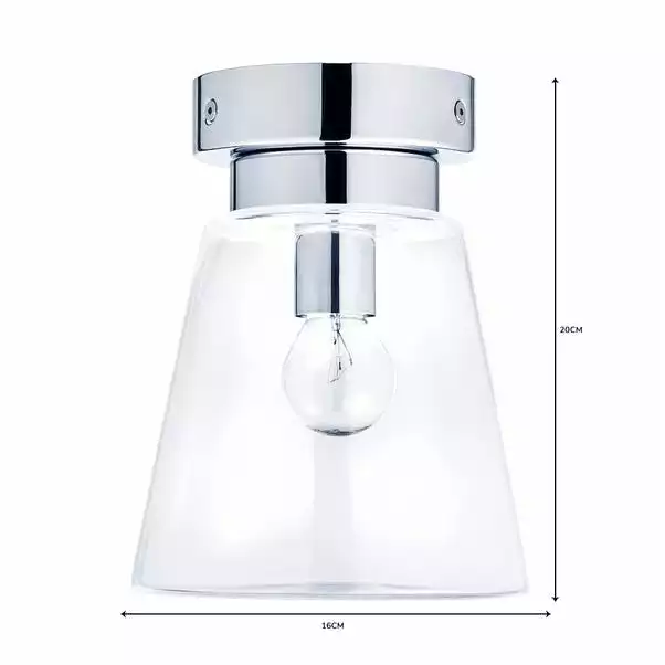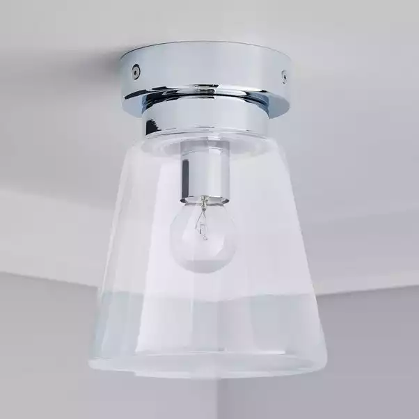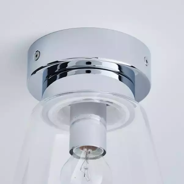 Beautifully designed, this bathroom flush light features a clear glass shade, with a chrome effect base and dimmable feature.