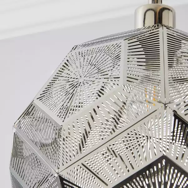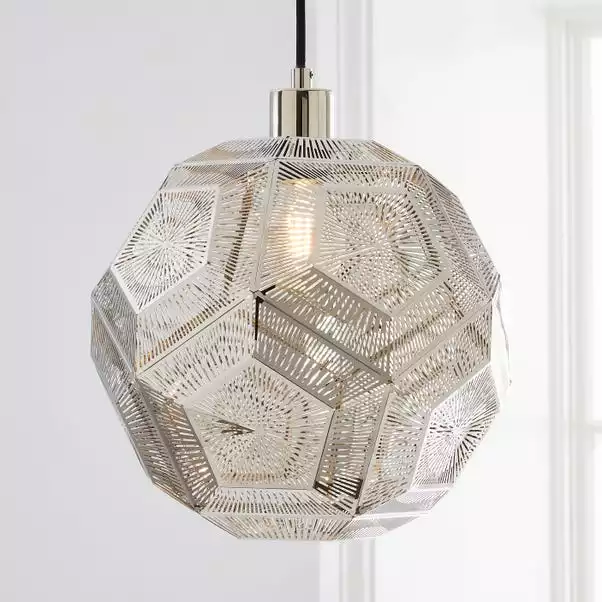 Beautifully designed, the Dodeca pendant fitting features a unique geometric design with a delicate cut-out pattern. This gorgeous light is available in a choice of satin brass gold and polished nickel finishes, and is paired with a contrasting black fabric flex cable.