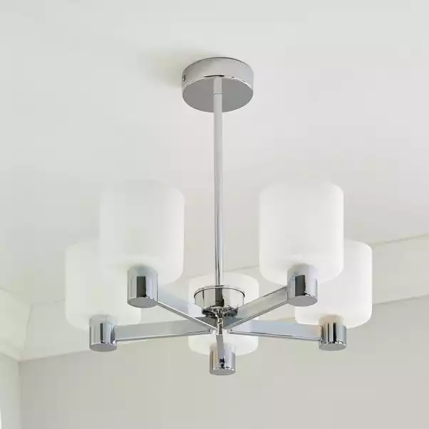 Featuring a modern luxe design, this 5 light ceiling fitting is ideal for adding a touch of contemporary style to any room. With a chrome plated finish and five frosted glass shades, this semi flush ceiling light is not only stylish but modern. This light is dimmable compatible and is perfect for use with G9 LED lamps. Good things come to those who coordinate, so why not pair this ceiling fitting with the matching wall light available to purchase separately?