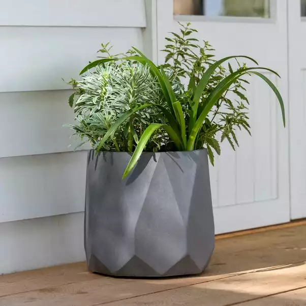 Featuring a stylish and contemporary geometric design, this grey fibreclay planter makes a chic addition to your garden décor. Made from a lightweight yet strong material, this planter is UV and frost resistant making it more durable during the seasons. The plant pot is ideal for both indoor and outdoor use.