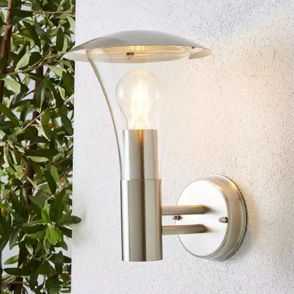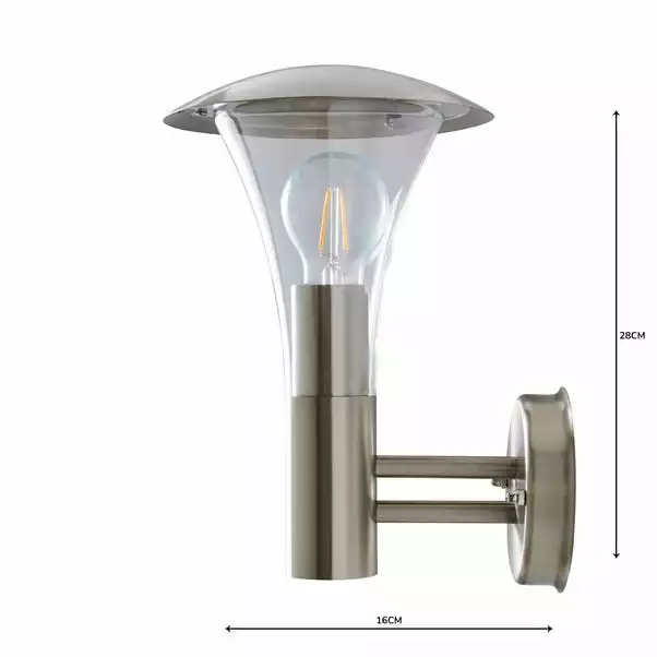 The Grax dimmable wall light features a tapered wall structure and a stunning brushed stainless steel finish, adding a stylish look to your outdoor space.