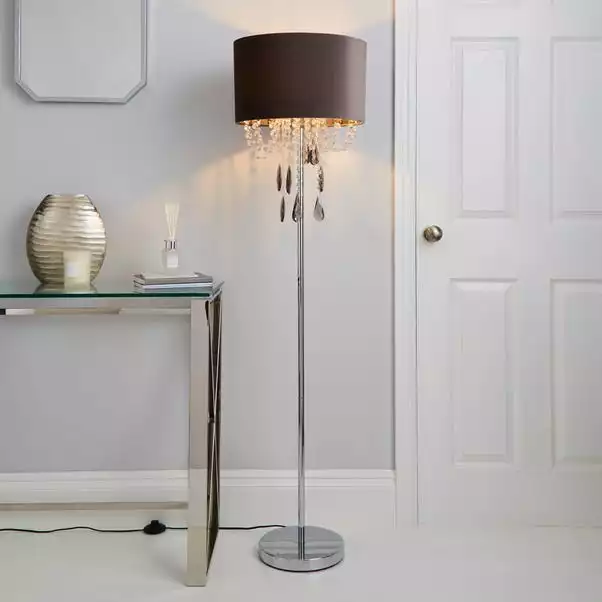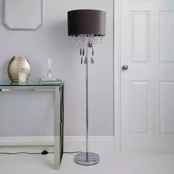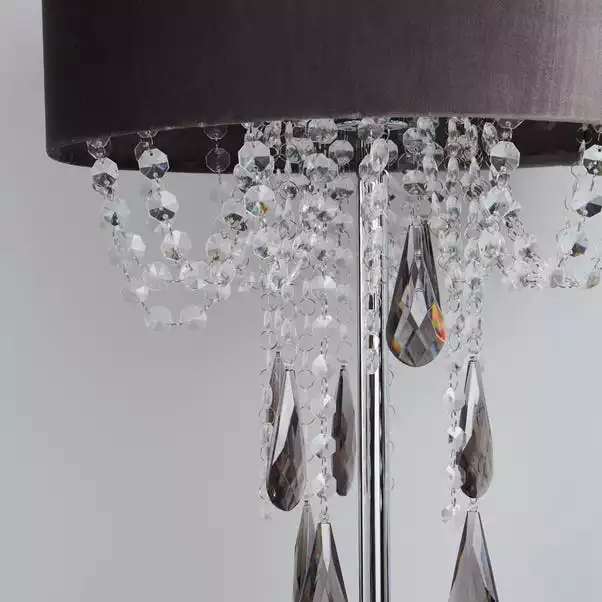 Make a glamorous statement to your home with the Halle Charcoal Floor Lamp, featuring a velvet shade with cascading acryclic drops in clear and smoke finish. This lamp also has an inline floor switch with a cable length of 100cm.