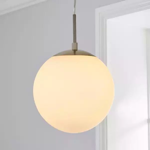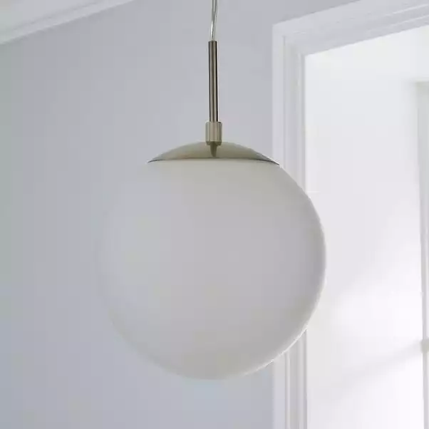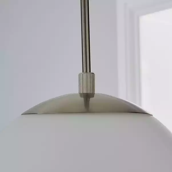 Add a stylish and modern touch to your home with this dimmable pendant light. Featuring a stunning satin nickel finish and an opal glass diffuser.