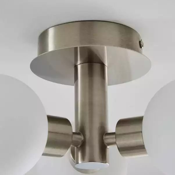 Add a stylish and modern touch to your home with this dimmable pendant light. Featuring a stunning satin nickel finish and an opal glass diffuser.