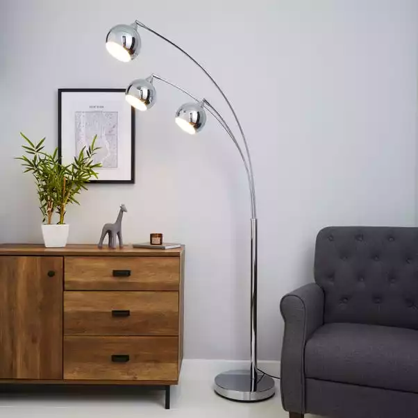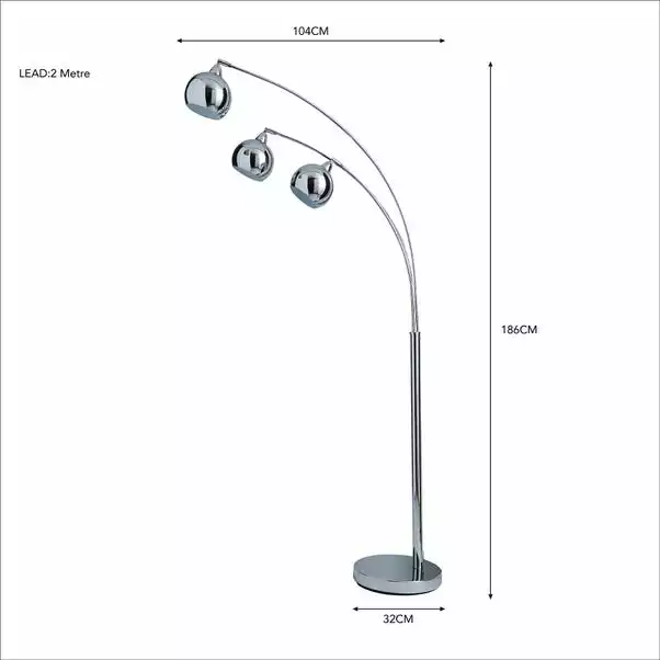 The Arc Herm Chrome Multi Head Floor Lamp features three dome shade heads with an inline switch, cable length of 100cm and crafted with a stunning smooth chrome finish, making it a perfect floor lamp to enhance your home décor.