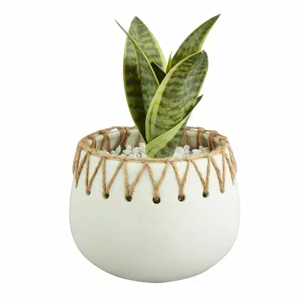 Made from ceramic with a unique design, this artificial plant and pot has a simple and classic design of a white glazed pot with jute rope and a modern colourway that will complement an array of home decors beautifully.