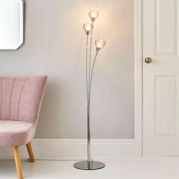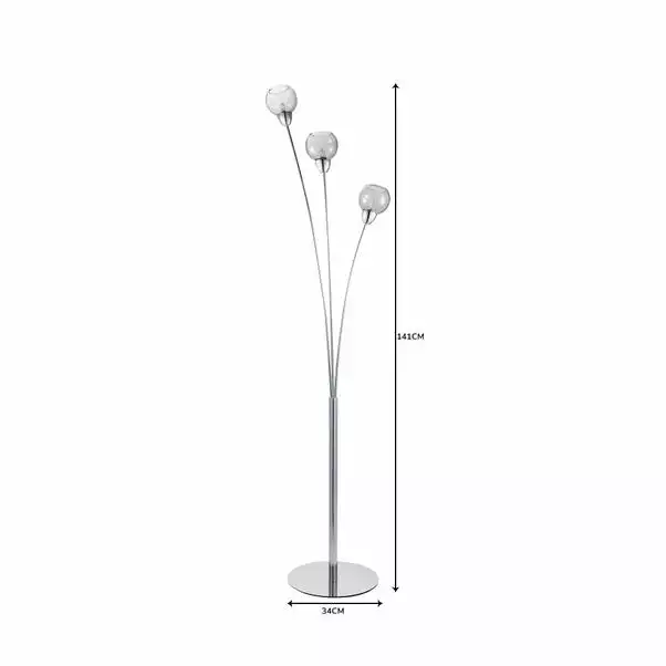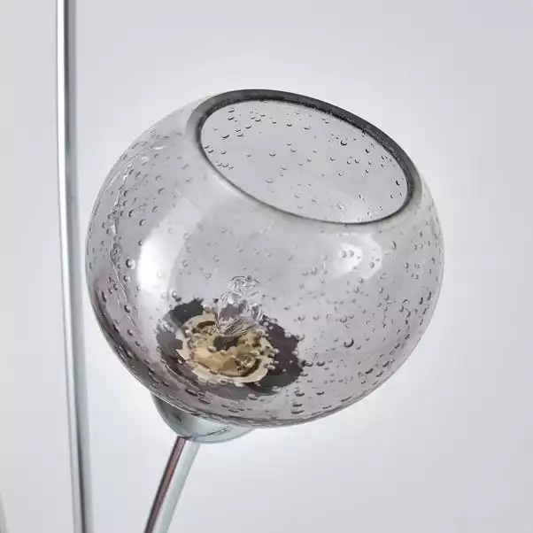 This unique bubble glass floor lamp would be the perfect way to add some interest to your room. Featuring contemporary tones and a chrome finish, floor lamp has 3 individual bulb heads.
