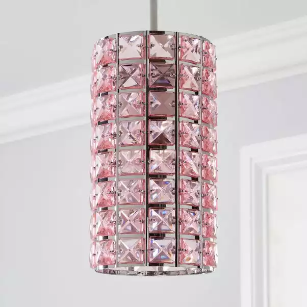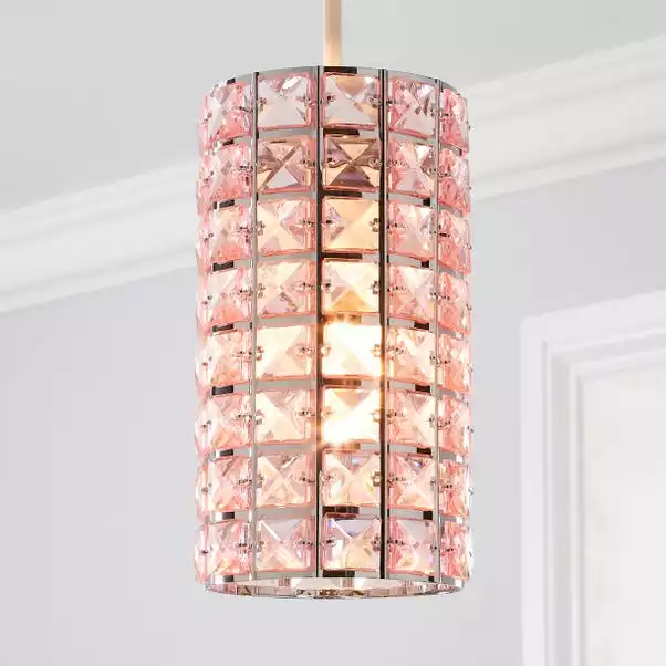 Bring a splash of luxe styling to your home with the glamorous Kiara easy fit pendant shade. This stunning shade features stunning pale pink acrylic crystals, paired with chrome finished details for a modern touch.