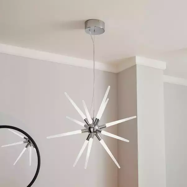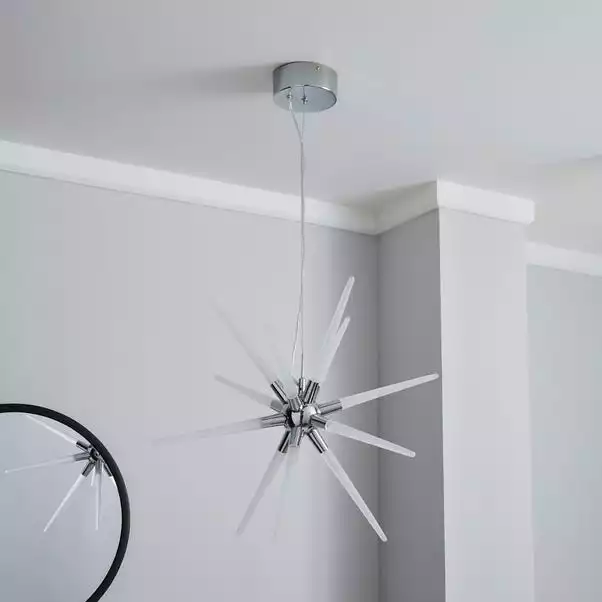 Add a modern element to your home decor with the beautiful Liard LED Sputnik Star Light, perfectly crafted with bright acrylic spikes and completed with a chrome finish for a futuristic appearance, this stylish light also features an integrated LED, making it excellent for any environmentally friendly home.