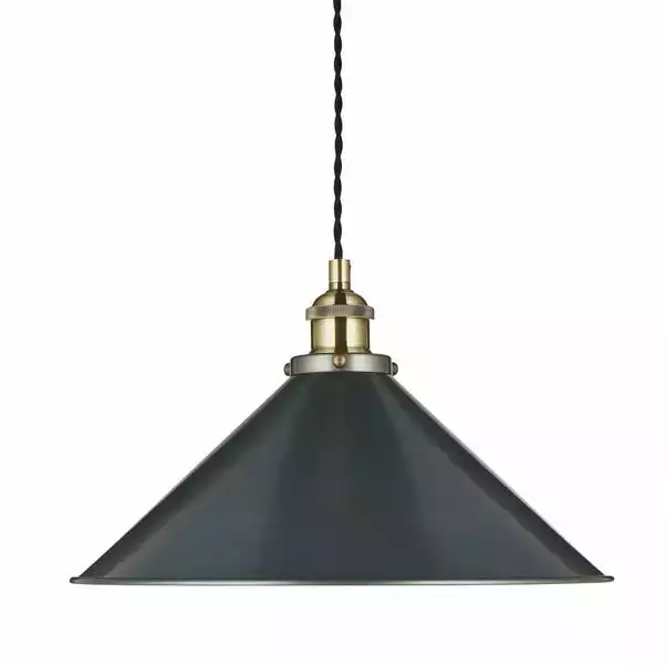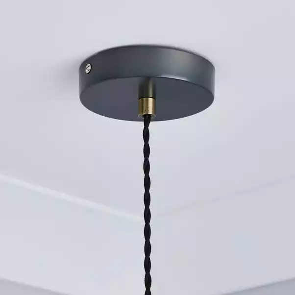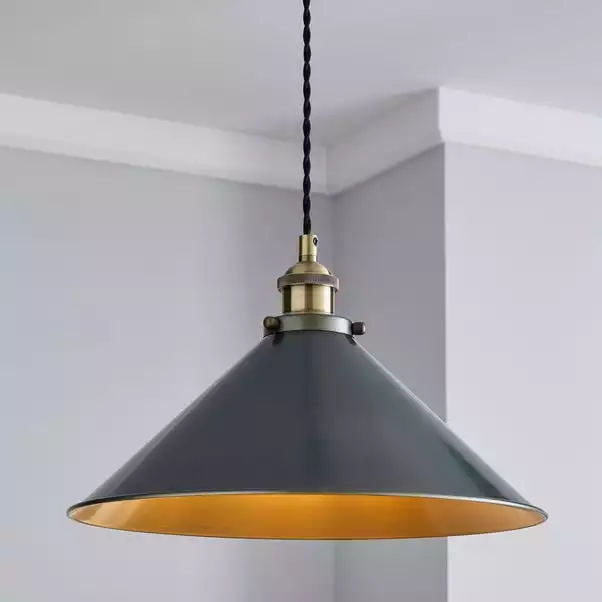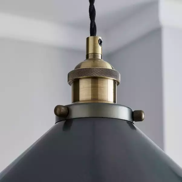 Add this industrial apartment inspired light fitting to your home to a contemporary touch. It features a dark, nickel painted finish with a lovely antique brass detail and black fabric flex cables.