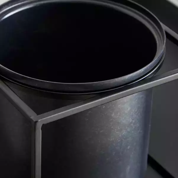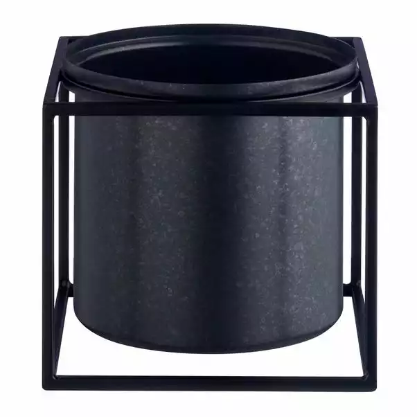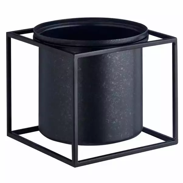 Made of metal and easy to wipe clean, this round pot with a square frame has a contemporary design that will complement an array of home decors beautifully, whether placed as part of a display or on its own.