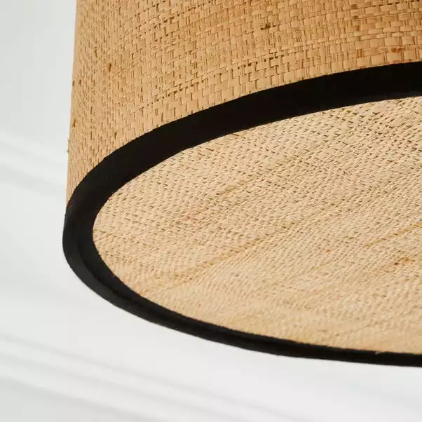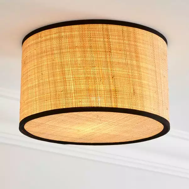 Made from sustainable and responsibly sourced natural Raffia and Cane, the Malika Cane Ceiling light has been finished in a sleek black rim. It’s complete with a flush fitting making it perfect for low ceilings and is dimmable, allowing you to set the ambience you desire.