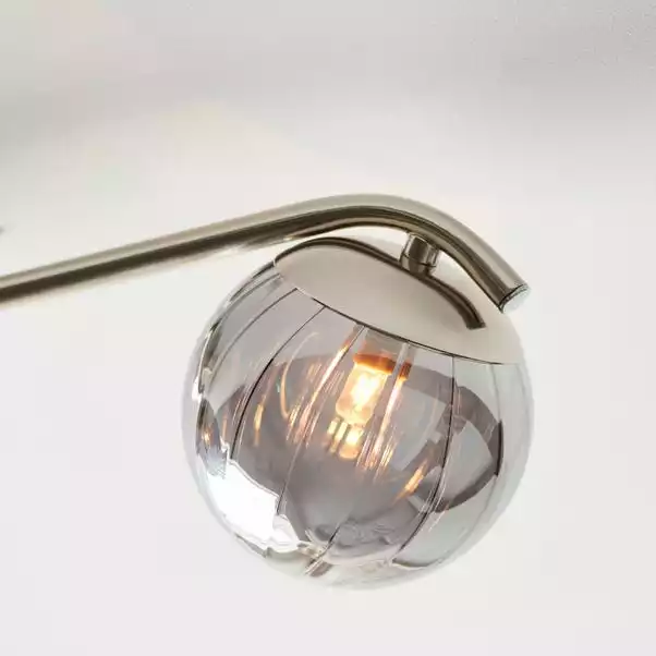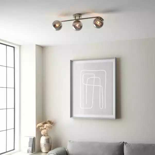 Brighten up your home with this stylish Marie 3 Light Spotlight Bar. This modern light fitting is available in a choice of smoked glass or pink glass ribbed shades, paired with a round metal ceiling cup and straight bar with curved edges, giving this spotlight a feminine look. This spotlight bar is dimmable and available in other colours, with matching family items available to help coordinate your home.