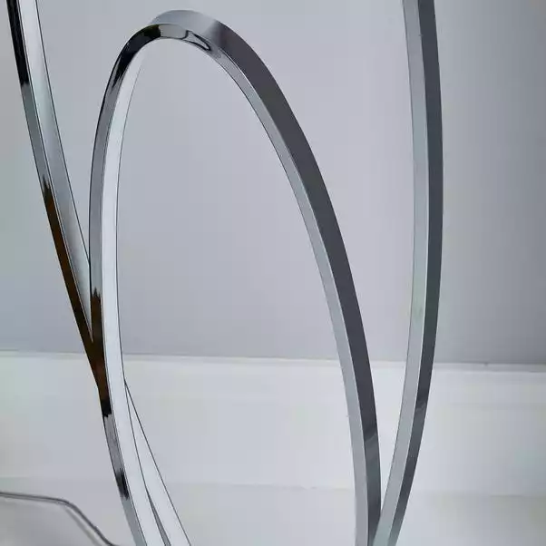 Complete with integrated LED light, this stunning floor lamp features a contemporary infinity design, chrome finish and is dimmable.