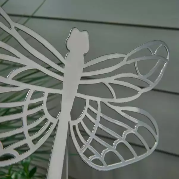 Bring life to your outdoor space with this delightful and unique Metal Dragonfly Stake wall decor. Made from 100% metal with a stylish silver colourway.