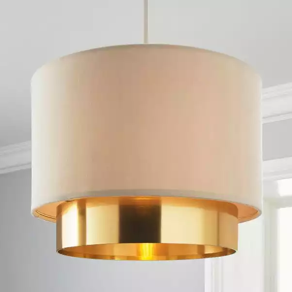 Available in a choice of rich colourways, the stunning Nesa two-tier shade would bring a unique and glamorous look to any space. Designed with a gold frame and brushed gold second tier, this easy-fit shade will complement an array of home decors.