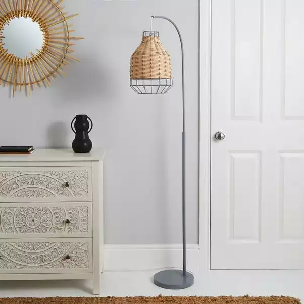 Bring a touch of natural style to your home with the gorgeous Ohio floor lamp. This lamp features a modern matt grey finished base, paired with a stunning woven rattan shade. Matching items are also available, making it easy to create a coordianted look.