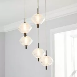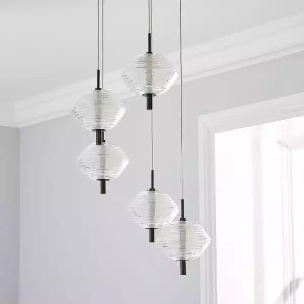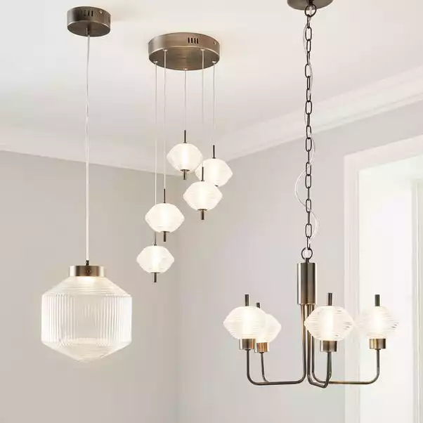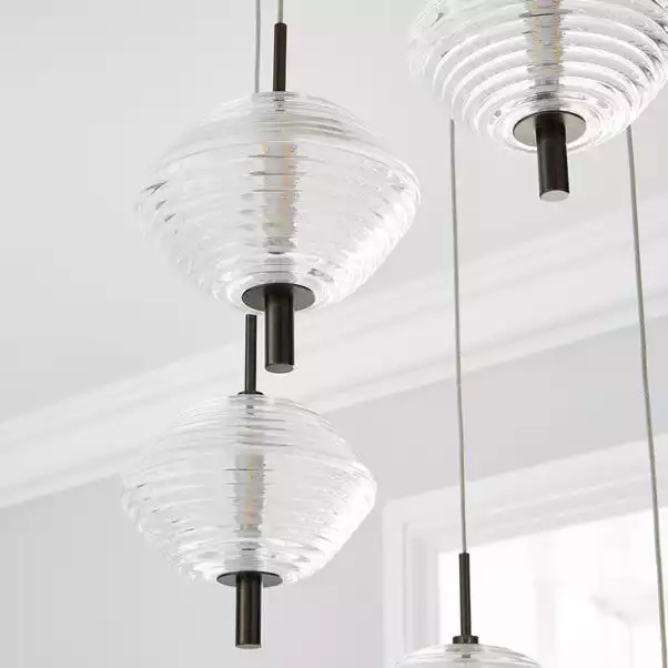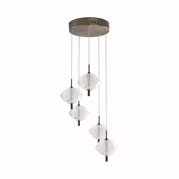 The Orb LED CLuster Fitting is perfect for adding a modern, industrial chic styling to your home. This stunning light fitting features brushed dark nickel finished details, as well as integrated LED lights and textured ribbed glass shades to create a stylish look that would enhance any space.