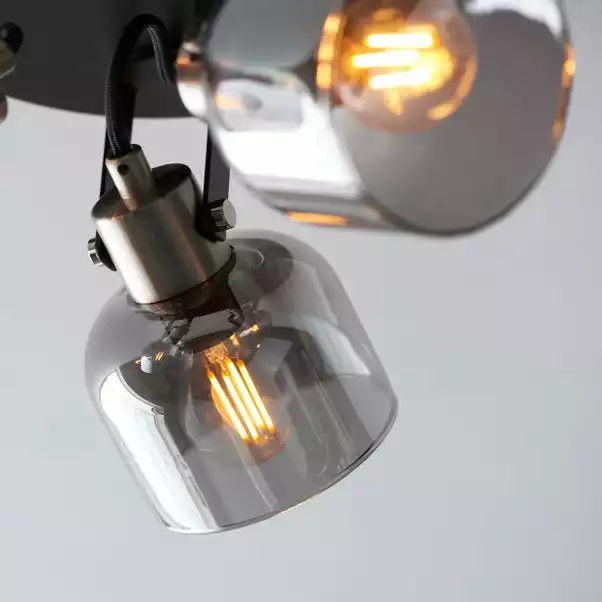 Illuminate your home with the Palazzo 3 Light Smoked Glass Spotlight. This modern contemporary inspired spotlight would suit a range of interiors. It features a black base and satin nickel effect plate, paired with three adjustable smoke glass heads. This stunning spotlight is dimmable compatible and perfect for adding a contemporary touch to your home, with matching family items available to help coordinate your home.
