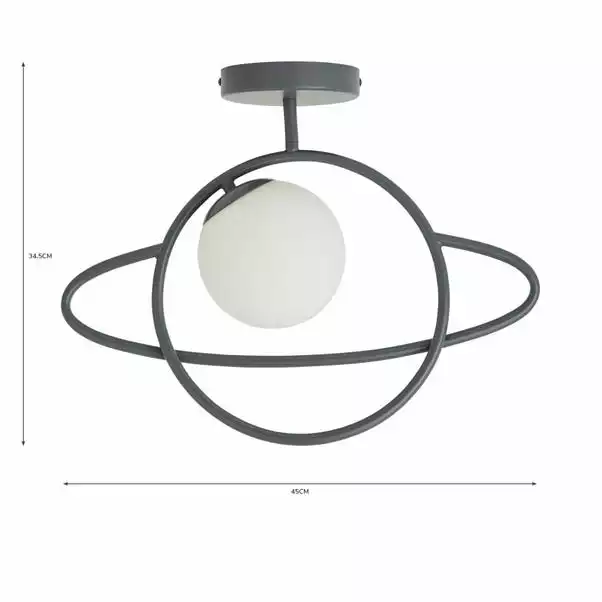 Boasting a fun, out of this world design, the Planet ceiling fitting is perfect for both kids rooms and adult spaces alike. This stunning semi-flush fitting features a modern matt grey frame, paired with a white glass shade in a unique planet design.