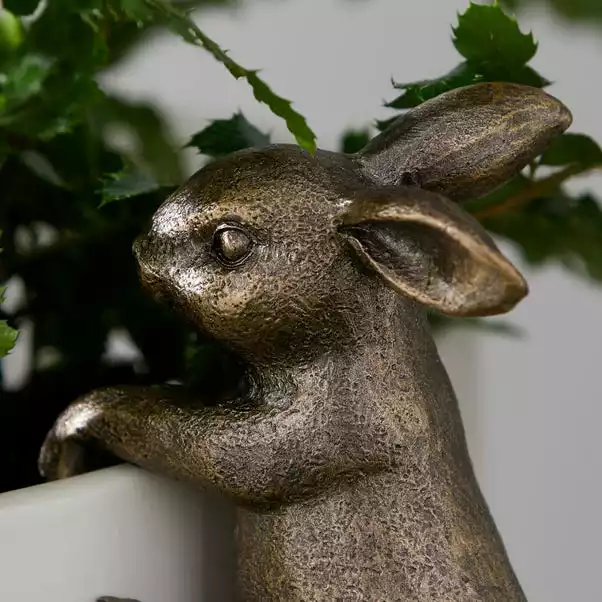 Perfect for adding a charming touch to your plant pots, this adorable plant pot hanger is fun and unique while being dressed with fine artistic detail. Made from polyresin, this pot hanger is durable and easy to clean. This pot hanger is suitable for standard plant pots. The rabbit pot hanger is suitable for indoor use and great for your lawn or yard.
