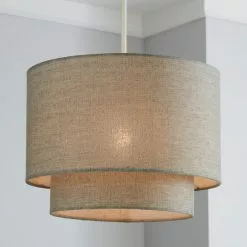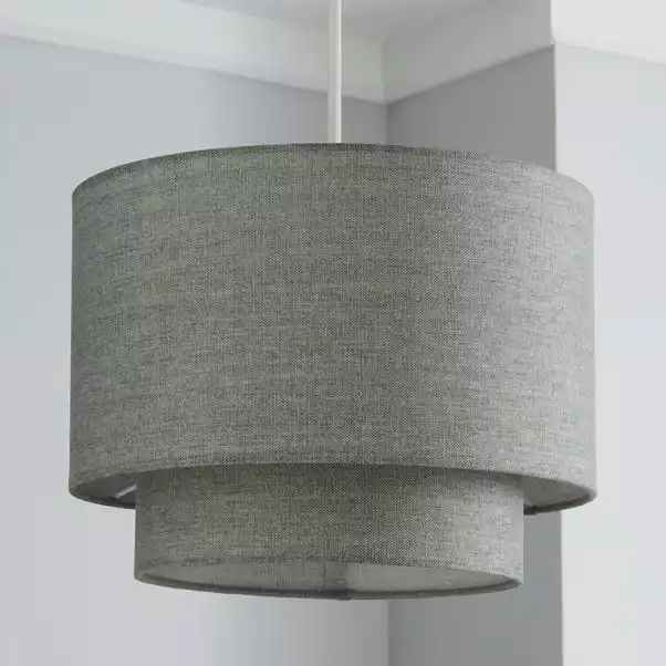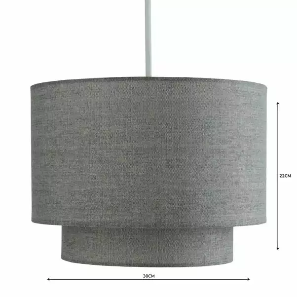 Featuring a contemporary two tier shape, this grey light shade offers a textured linen shade and modern style.