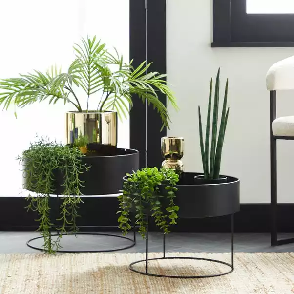 Crafted beautifully from durable powder coated metal, this stylish set of 2 plant stand is the perfect way to add a welcoming touch to your home. Bringing the outside in, these stands are easy to assemble and can display a range of indoor plants. The simple shelf feature on one stand makes it perfect for placing smaller plant pots or ornaments. This plant stand is available in a range of colourways, its modern and simple design will look trendy in any indoor space.
