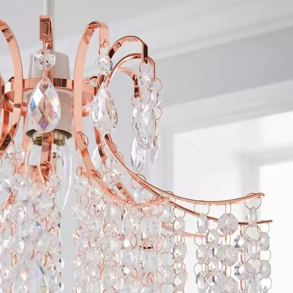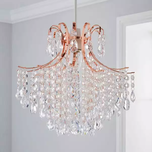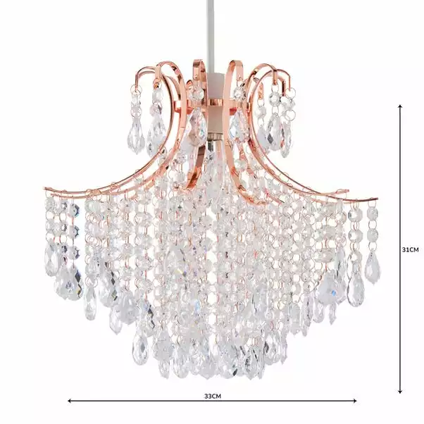 This stunning chandelier pendant will add a touch of glamour to your room. With a copper finish, this light is made from durable steel and acrylic string beads.