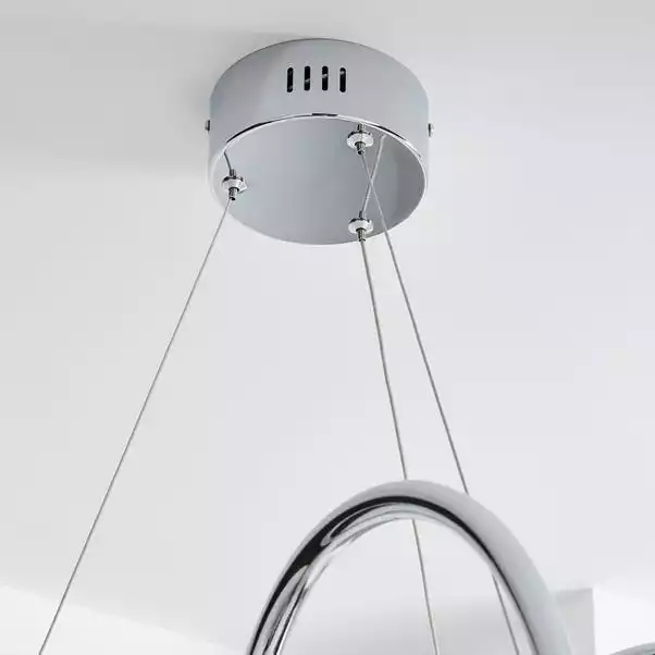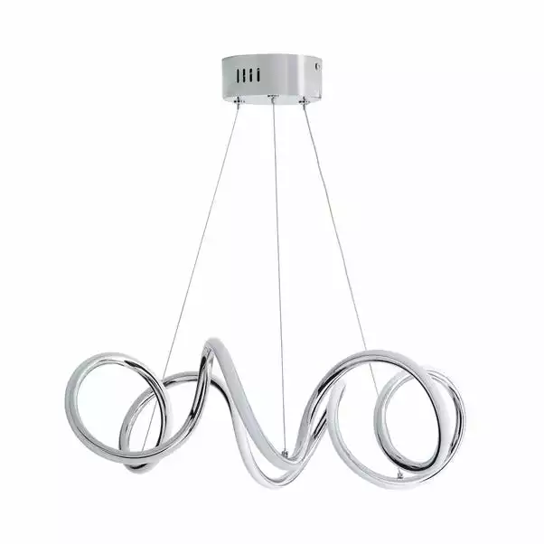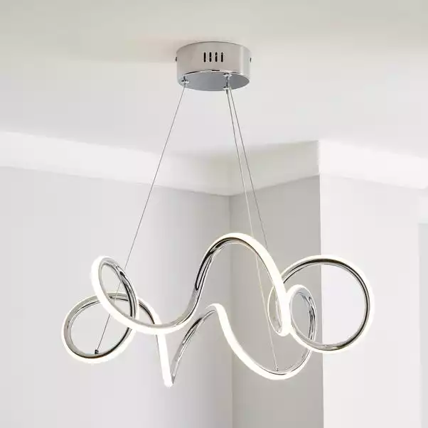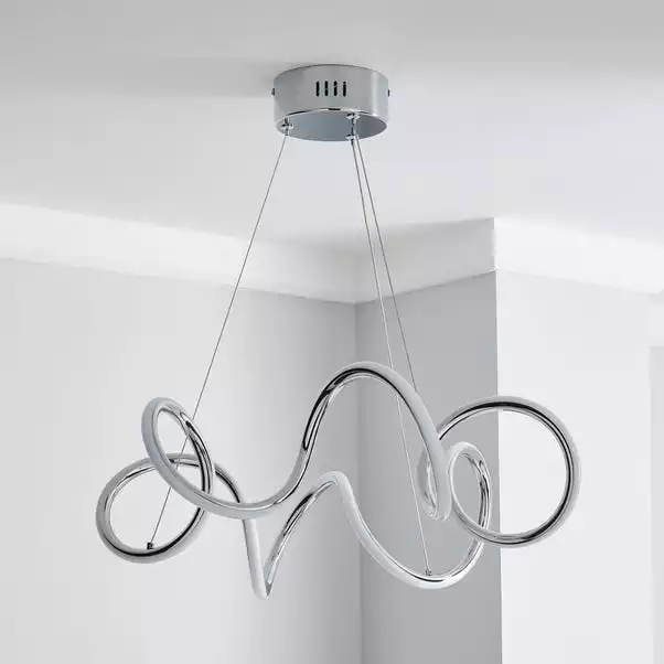 n incredible abstract design, the Skylar Curly LED light fitting would make a stunning statement piece for any modern home. Boasting a beautiful chrome finish, this fitting features integrated LED lights, complete with clear flex suspension with adjustable height. Please note this piece is not dimmable compatible.
