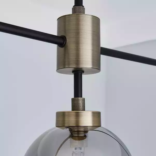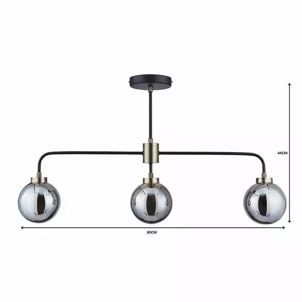Finished in black, our ceiling light fitting features three glass shades which change colour when the light is switched on. This piece is dimmable compatible, making it both an attractive and practical product.