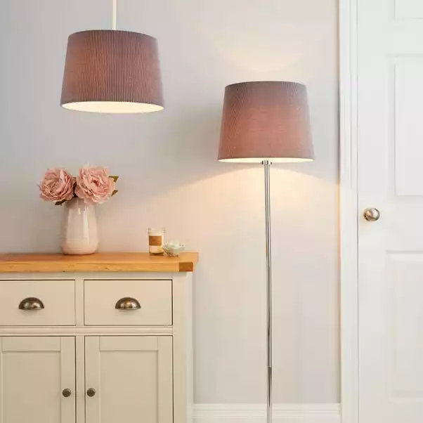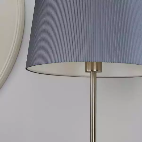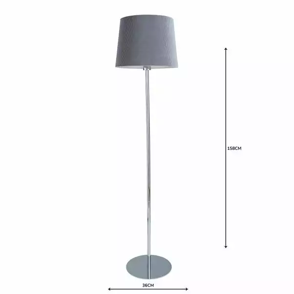 Add a chic element to your home décor with the Tula Floor Lamp, featuring a satin nickel material with a micro pleat textured shade and a sleek thin flat base, this minimalistic lamp has been constructed with steel to ensure durability, making it the perfect addition to any home. This floor lamp has a cable length of 150cm.