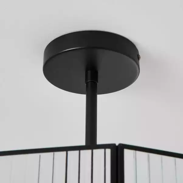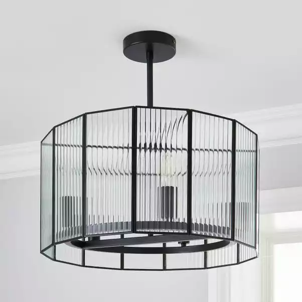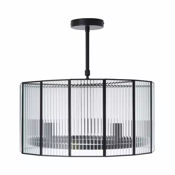 Add a contemporary touch into your home with our Voss Ceiling Fitting that features luxe ribbed glass and a black metal painted frame. This ceiling fitting requires 5 x Candle SES (E14) – 4W LED which is not included with the light. A 2-year guarantee is provided with this ceiling light.