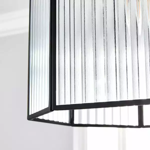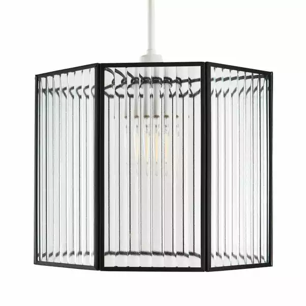 Featuring the stunning Voss Easy Fit Pendant, crafted with a metal black painted frame coupled with clear ribbed glass panels. This luxurious light pendant will make a striking addition to any room in your home and complement an array of home décor styles. Matching family items from the Voss range are available to help coordinate your home.