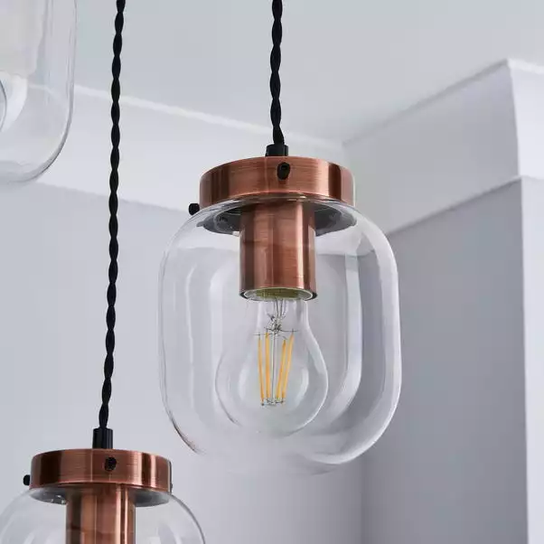 This ceiling fitting is the perfect piece to accompany and add a touch of style to any room of the house, finished in a stylish brushed copper paired with a contemporary clear shade that would complement a variety of home decor styles. Fully height adjustable, this light is also compatible with dimmer switches with matching family items also available.