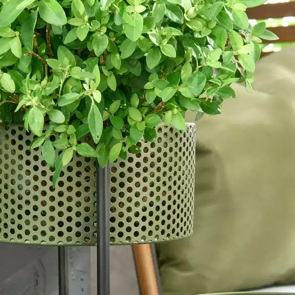 The Elements Foldable Plant Stand is a unique way to bring greenery into your home or outdoor space. The olive green plant stand is made from high quality metal and the stand has a sleek, modern design.